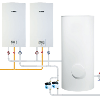 1 calentador Easy Control + 1 tanque 200 litros + 2 bomba recirculadora.